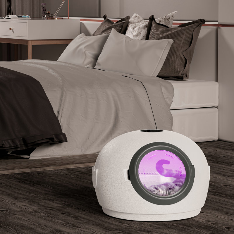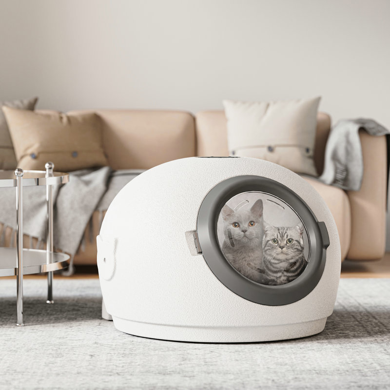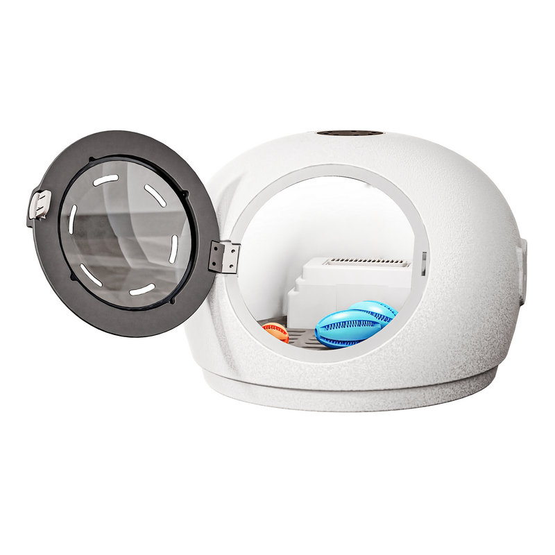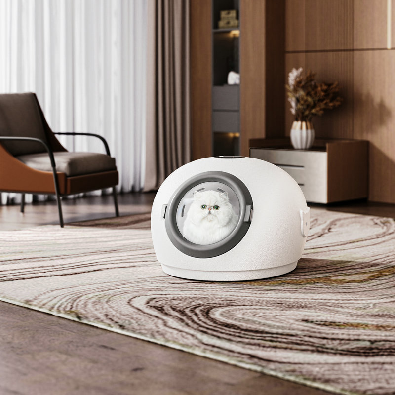 Before the first use, it is recommended to familiarize your pet with the product before bathing. Open the drying chamber door, place the pet inside, offer treats to soothe the pet, and reduce its fear of the new device. Then, open the product to allow the pet to hear the sounds, smell the odors, and explore the interior. You can also place a cushion inside for the pet to use as a bed regularly, helping the pet become accustomed to the new item.
