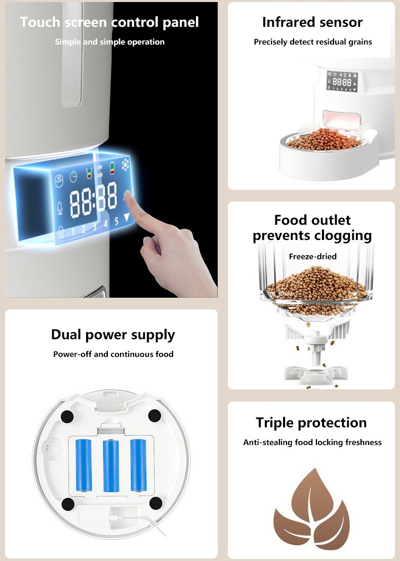 · The food outlet is sealed to prevent pets from eating food and mosquitoes from entering the food barrel;